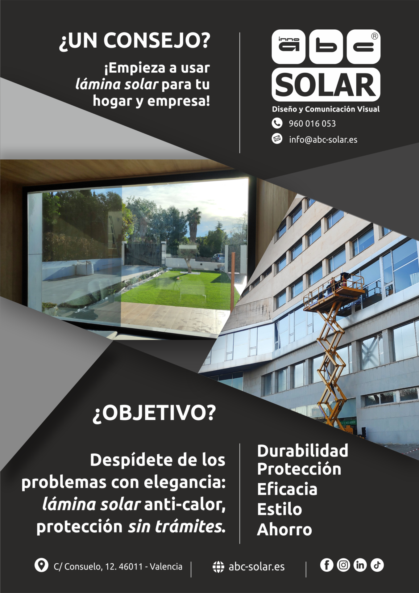 En definitiva, la elección de una lámina solar va más allá de un simple acto de compra; es una decisión estratégica que mejora la calidad de vida y la eficiencia de su espacio. Nuestro compromiso es guiarle en este proceso, asegurando que la solución que elija no solo cumpla con sus expectativas, sino que las supere. Con nuestra experiencia y la más alta calidad en materiales y acabados, garantizamos una transformación que se siente y se vive cada día.